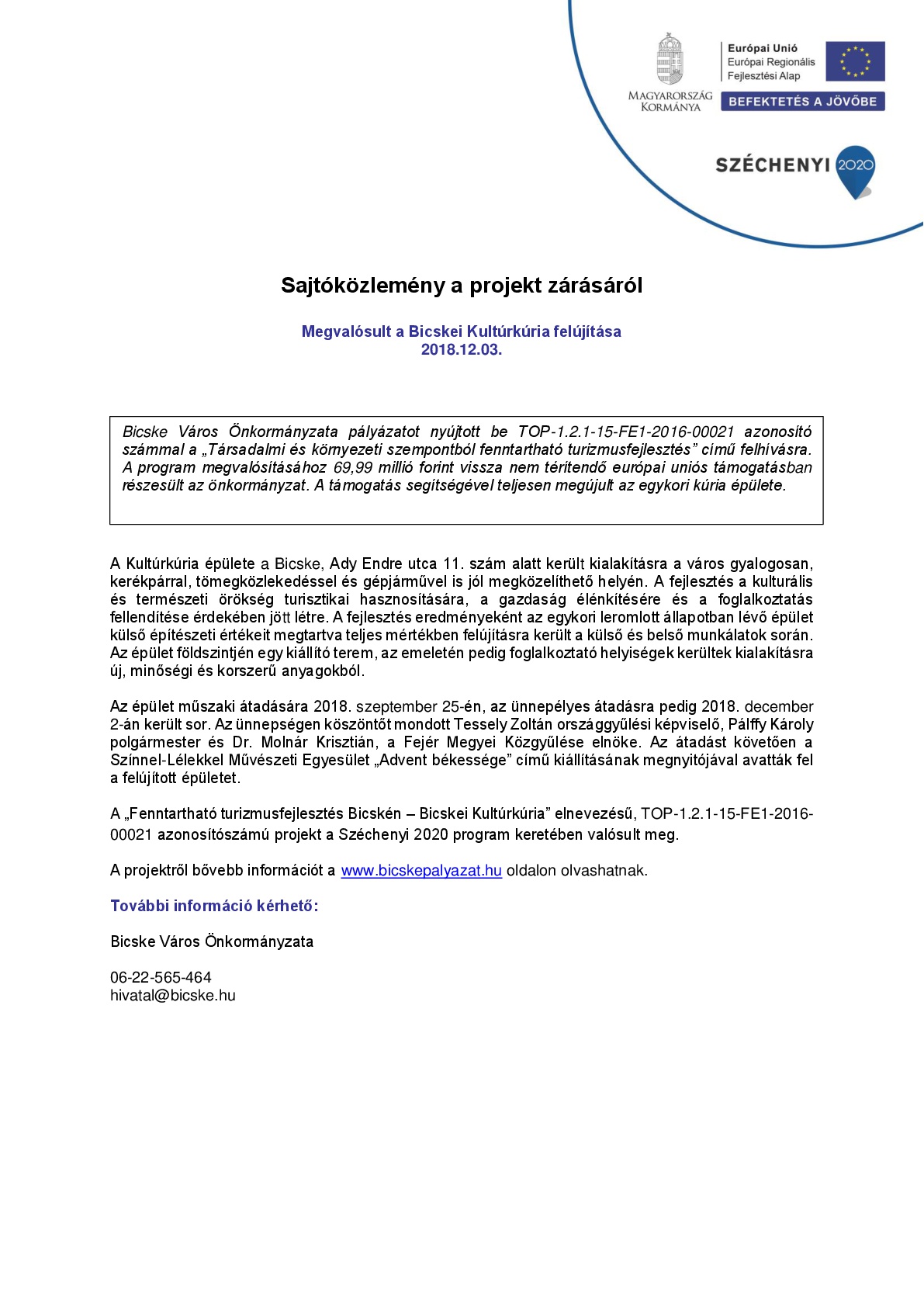 Fizikai befejezésének határideje: 2018.10.31.