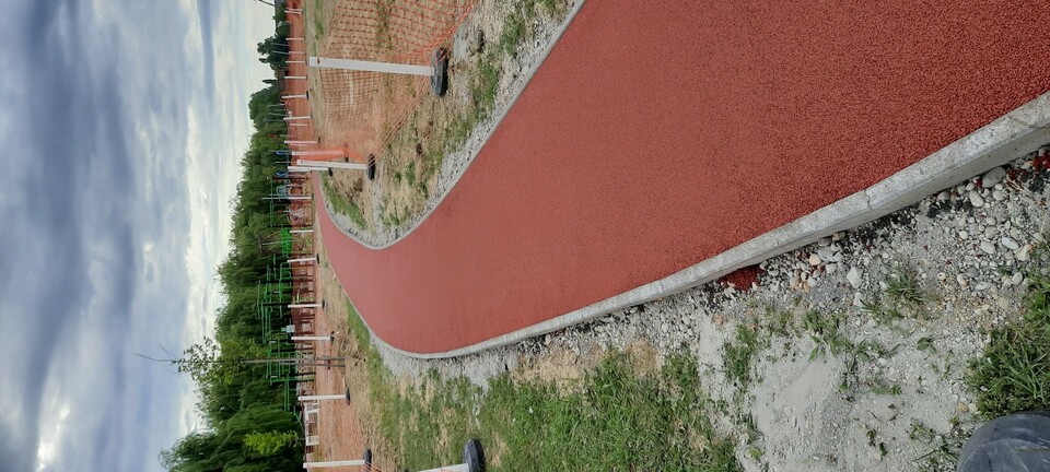 - Futópálya öntött gumiburkolat építése 80%-ban,