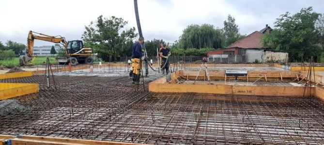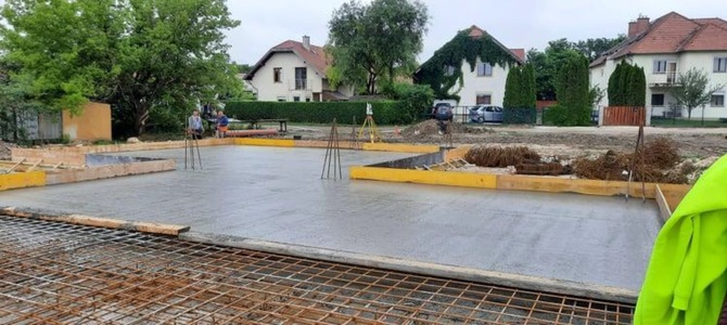 - Az új statikai terv szerint került az épület vasbetonlemez építési munkái elkészítésre.