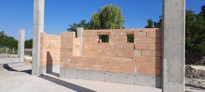 - Épület szerkezetépítési munkái közül a fal-, oszlop- és gerendazsaluzása; a betonacél helyszíni szerelése; hegesztett betonacél háló szerelése; beton- és vasbeton készítése; teherhordó-, kitöltő- és válaszfal építése, áthidalók beépítése; előregyártott acél szerelvények beépítése; talajnedvesség elleni szigetelés készült el.