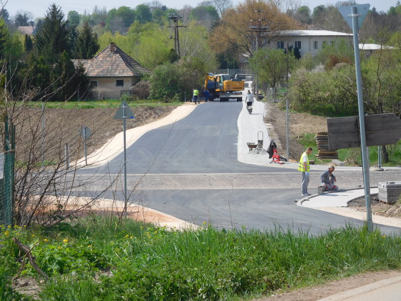 Az átkötő úton befejeződött az összes szegély építés. A magas oldalon K szegély, a mély oldalon a járda mellett kiemelt szegély épült. Megkezdődött és be is fejeződött az összes térkövezési munka, beleértve az 1. sz. főút gyalogos átkelőhelyéhez tartozó szigetek burkolását is. Itt a térkő burkolatba beépítésre kerültek a rávezető és megállító taktilis burkolóelemek is. Elkészült a kétoldali padka földmunkája és a gépi és kézi területrendezés. Megépültek a szükséges szikkasztó és vízelvezető árkok. Beházásra került az AC11 kopó aszfalt réteg.